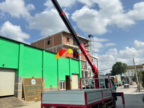 Cẩu Unic URV340 thường được lắp phía sau cabin, giúp tận dụng tối đa diện tích thùng hàng phía sau. Thiết kế này cho phép xe vừa vận chuyển hàng hóa vừa có thể thực hiện thao tác nâng hạ ngay tại vị trí công việc.